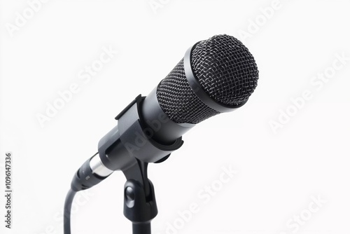Microphone isolated on white : microphone on stand, radio microphone, podcast microphone