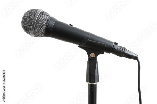 Microphone on stand isolated on white background.