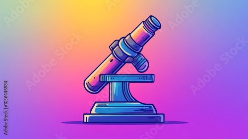 Microscope icon, gradient background transitioning through vibrant hues, minimalistic flat design, sharp lines with a modern scientific aesthetic