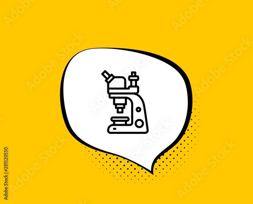 Microscope line icon. Comic speech bubble. Chemistry lab sign. Analysis symbol. Yellow background with chat bubble. Microscope icon. Colorful banner. Vector