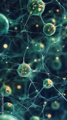 Microscopic view displaying interconnecting neurons forming a complex network