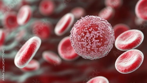 Microscopic View Of A Cancer Cell Among Red Blood Cells