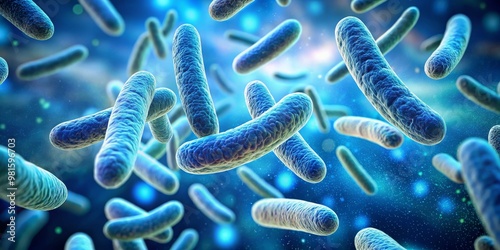Microscopic View of Rod-Shaped Bacteria in a Blue Background, 3D Render, Digital Art, Microorganisms, Bacteria, Microbiology