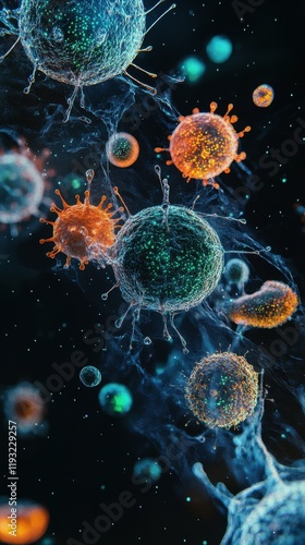 Microscopic View Of Viruses In Cellular Replication