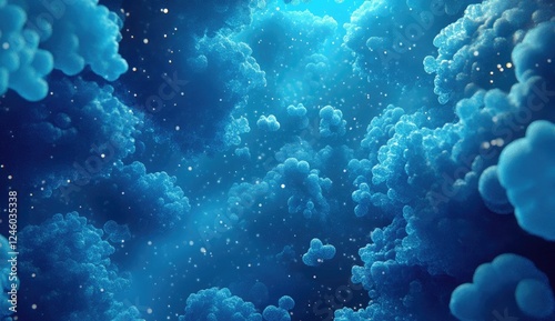 Microscopic Virus, Bacteria and Microbes on blue Background with copy space. Abstract template for Scientific, medical, biological research. Fight against infectious diseases poster