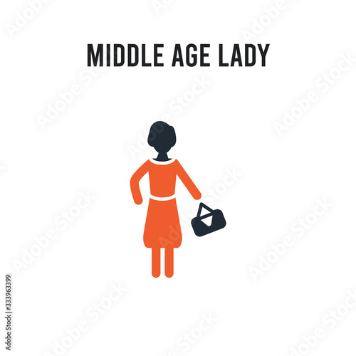 Middle Age Lady vector icon on white background. Red and black colored Middle Age Lady icon. Simple element illustration sign symbol EPS