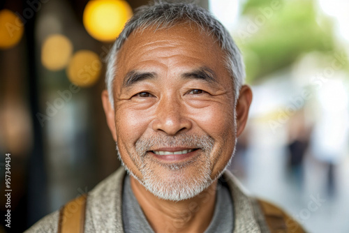 Middle aged Asian man with a gentle smile