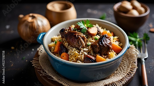 Middle Eastern rice pilaf with almonds and lamb shanks