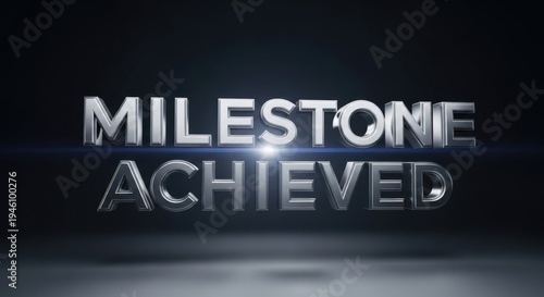 "MILESTONE ACHIEVED" - Silver 3D Text on Dramatic Dark Background