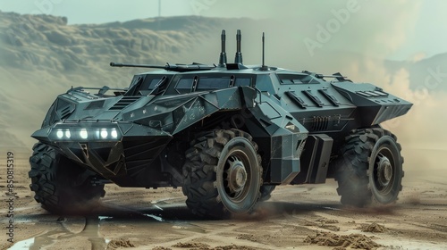Military Armored Vehicle in a Desert Landscape