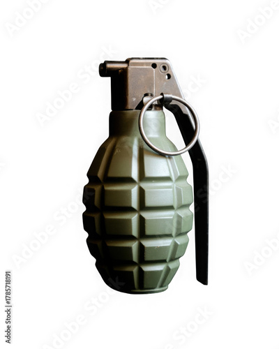 Military hand grenade with safety pin and lever, isolated weapon object. isolated on transparent background