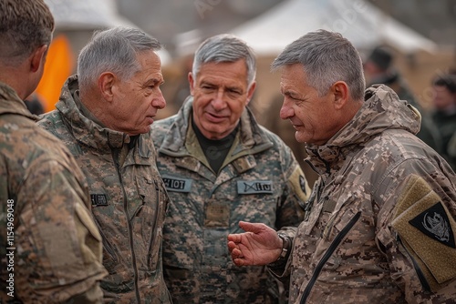 Military Leaders Engaged in Strategic Discussion Outdoors