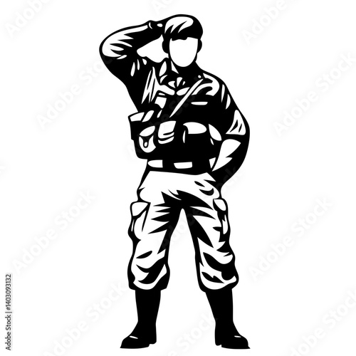 Military Soldier Saluting Vector Illustration for Craft Projects and Digital Designs