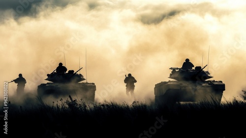 Military Tanks in Foggy Landscape