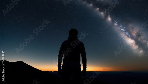 Milky way galaxy and silhouette of a standing man