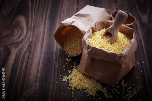 Millet grain in paper bags