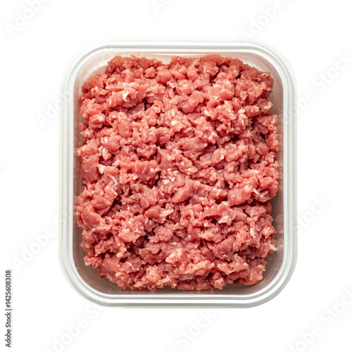 Minced meat pork in a plastic container [Transparent Background PNG]
