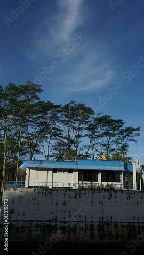 Mini office beside water storage dam