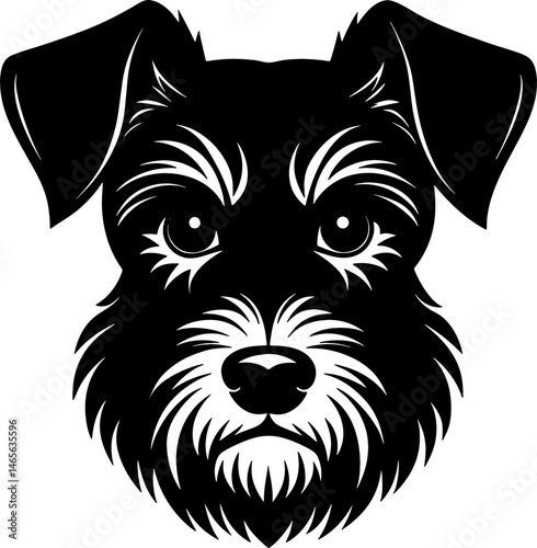 miniature schnauzer head simple black silhouette, Black silhouette vector icon, silhouette illustration, Animal silhouette