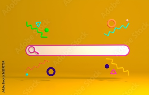 Minimal abstract background for online and shopping concept. Blank web browse search bar on blue background. 3d rendering. Clipping path of each element included.