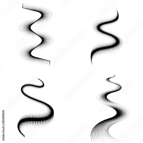 Minimal abstract wave lines in dotted halftone style, light flowing forms, black and white vector elements