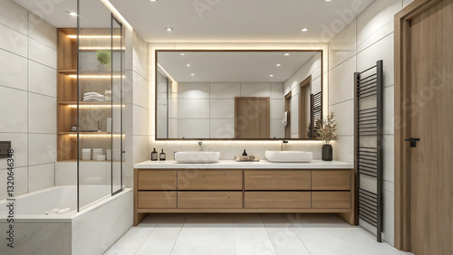 Minimal bathroom design modern home interior space clean aesthetic wide angle serenity and functionality