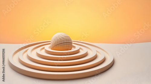 Minimal Beach Sunrise with Concentric Shell Pattern Design