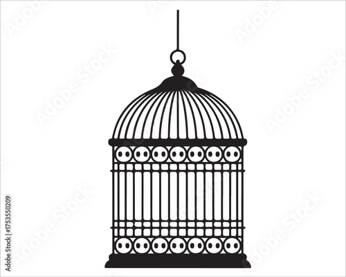 Minimal birdcage vector with flying birds representing liberty and inspiration