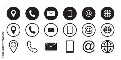 Minimal Contact Icons Pack – Line & Filled Style | Location, Phone, Email, Mobile, Web & Social Media Icons.