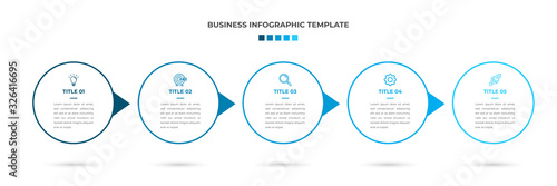 Minimal Modern Minimalist Business Infographics template with circle shape. 5 steps / option timeline with icons. For presentation, process, diagram, workflow, chart. Vector with blue, white color