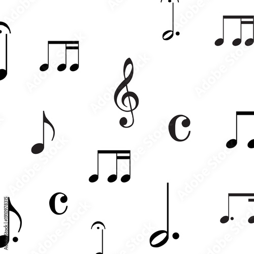 Minimal Scattered Music Notes Seamless Pattern black and white large scale
