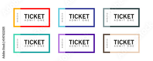 Minimal ticket vector design template. Music paper pass symbol. Six colors concept.