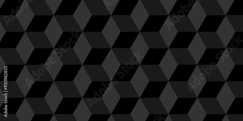 Minimal vector cubes geometric tile and mosaic wall grid backdrop digital hexagon technology wallpaper background. dark black block cube structure backdrop grid triangle texture vintage design.