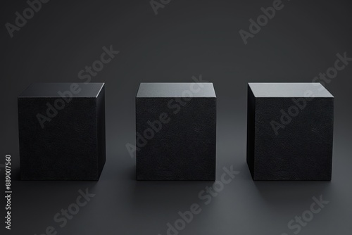 Minimalist 3D Rendering of Three Black Cubes on a Dark Background