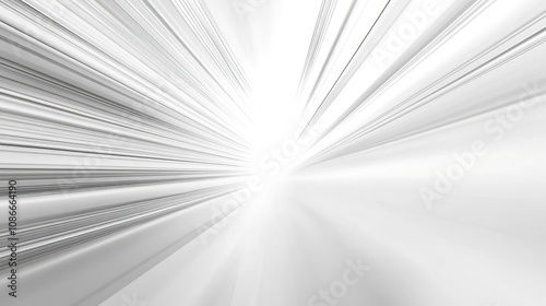 Minimalist abstract design showcasing gentle silver rays radiating from a bright center against a clean white backdrop.