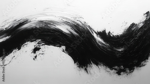 minimalist abstract painting showcasing bold black and white brush strokes resembling spirals conveying a sense of movement and thought created with aigenerated techniques