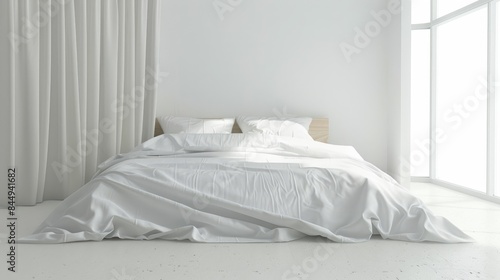 Minimalist bed with pristine white bedding