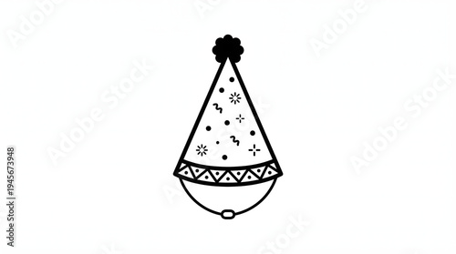 Minimalist Birthday Party Hat Icon with Decorative Pattern