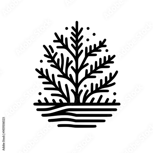 Minimalist Black & White Tree Icon with Snow, Modern Design
