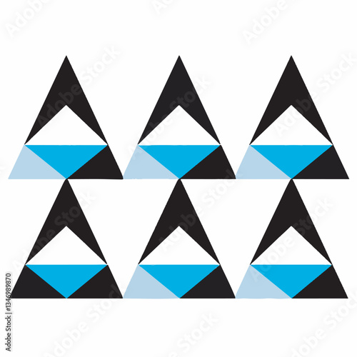 Minimalist black and blue geometric triangle pattern with symmetrical arrangement.