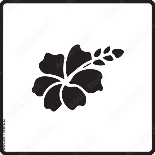 Minimalist black and white hibiscus flower silhouette icon