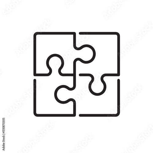 Minimalist Black and White Puzzle Icon with Simple Geometric Design – Flat Vector Illustration