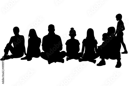 Minimalist Black and White Silhouette Illustration of People Sitting in Zen Meditation Pose, Depicting Mindfulness, Spiritual and Wellness Retreat with Simple Monochrome Design
