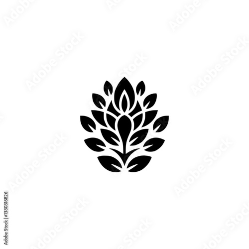 Minimalist Black Floral Emblem on White, Modern Logo, Elegant Design