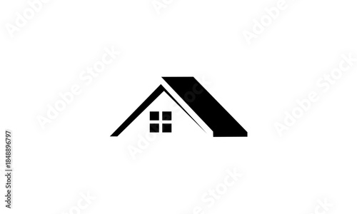 Minimalist black house roof with window icon design.