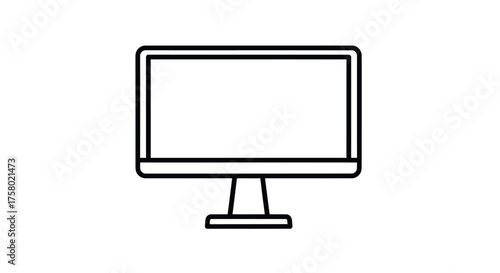 Minimalist Black Outline Computer Monitor Icon with Blank Screen.