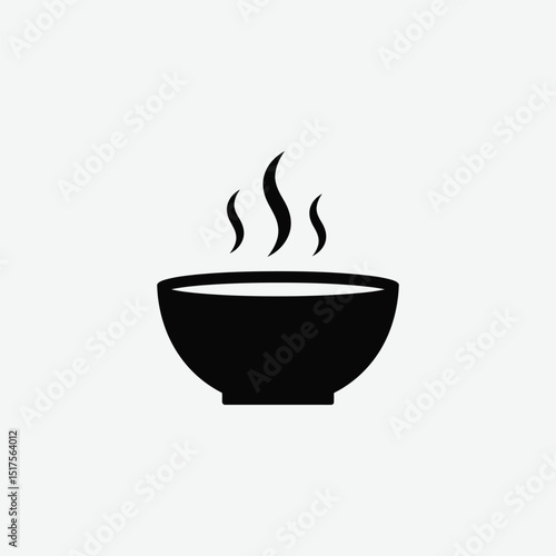 Minimalist black silhouette of a hot steaming bowl icon. Perfect for food logos, restaurant branding, or cooking apps. Clean, modern, and easily recognizable design.
