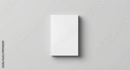Minimalist catalog display mockup of blank book cover with binding and shadow on smooth surface