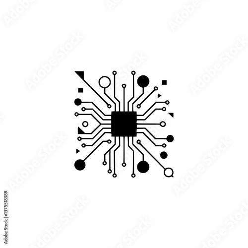 Minimalist Circuit Board Design on White Background