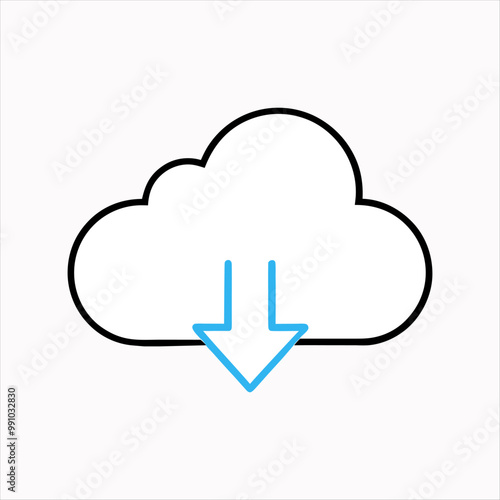 "Minimalist Cloud Download Icon Silhouette with Bold Downward Arrow – Modern Vector Design